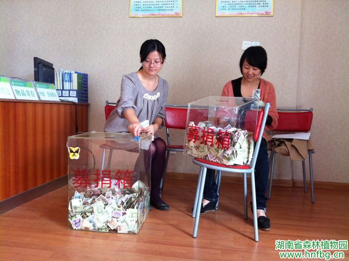 此次在我园西门和北门开展的爱心募捐活动,是2012湖南世界名花生态文化节“秋之色”——湖南首届百万花·蝴蝶文化节举办的系列活动之一,活动旨在倡导爱心公益,传递爱心、传播文明,号召广大游客朋友为福利院及“蝴蝶之家”的孤残儿童奉献爱心。通过双方工作人员近2个半小时的努力,终于将两个募捐箱的所有款项一一清点到位,1角、5角、1元、5元、10元……爱心捐赠一点点,真情汇聚暖人间,在短短8天时间里,广大的游客朋友包括我园职工在内,一起为福利院募捐了6703.5元善款。