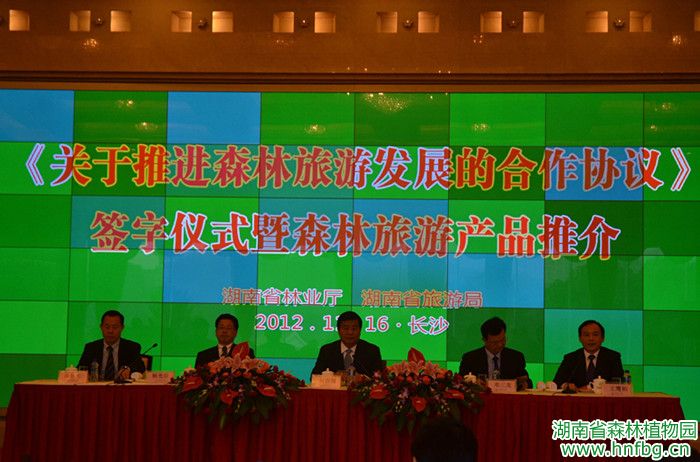 会上,省林业厅厅长邓三龙和省旅游局局长杨光荣签署合作协议,承诺双方建立森林旅游领导会商机制,统筹规划森林旅游的发展,推动森林旅游服务体系、人才队伍建设,加大森林旅游宣传推介力度,促进森林旅游的投资增长,探索森林旅游发展模式。