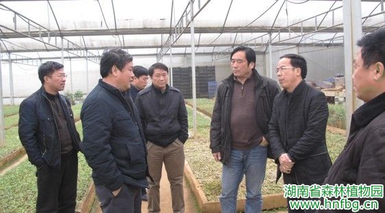 2013年2月27日,湖南省林业科技推广总站站长夏晓敏、副站长蒋胜铎等一行来我园检查中央财政林业推广的实施情况。首先询问了园承担推广的执行情况,听取了园副主任刘炜同志及相关课题组的汇报,随后现场视察花卉中心,指出蓝莓是个朝阳产业,在亩产700公斤基础上,加强技术攻关,向“吨粮田”迈进,目前蓝莓市价80元/斤,其效益可观。夏站长一行还到我园组培中心,检查了为林业厅新办公大院准备的桉树苗木生长情况,并肯定了组培中心冬季温室桉树育苗成就,并强调在树苗造林前必需炼苗。与夏站长同来的还有陈家辉等。