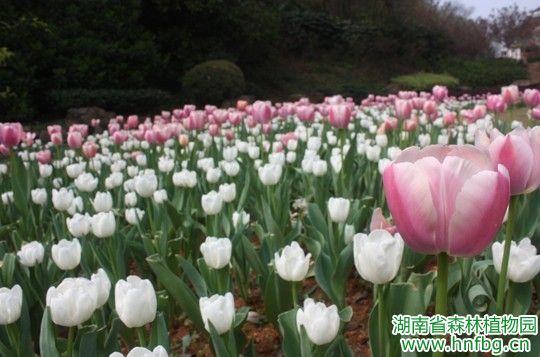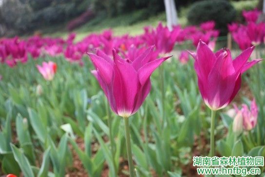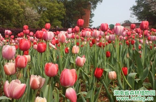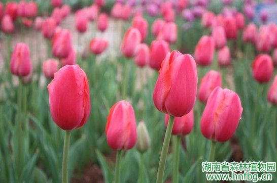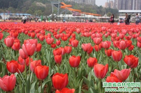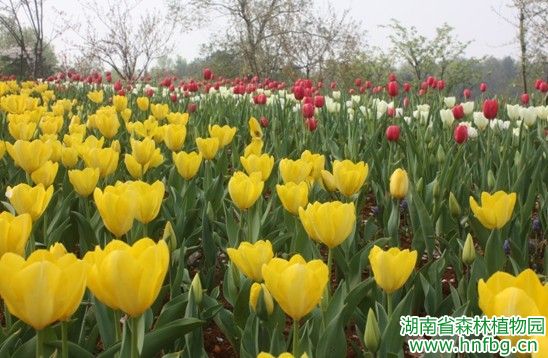 阳春三月,湖南省森林植物园里来自荷兰的郁金香在霏霏春雨的滋润下争奇斗艳、竞相绽放,把湖南省森林植物园变成了一个五彩缤纷的花海。