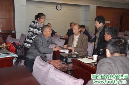 讲座结束后,举行了湖南省森林植物园聘请李嘉珏教授为客座研究员的仪式,王明旭书记颁发聘书并与李教授合影留念。