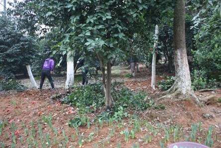 开春以来,在园领导彭春良主任的部署下,我处组织园林工人对茶花专类园进行树型修整、场地平整、撒播草种提质改造工作,全面提升樱花湖区域的景观效果。
