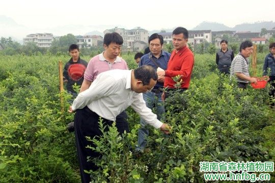 5月17日下午,唐苗生副厅长在科外处、林业科技推广总站和病虫害防治总站负责人陪同下到我园蓝莓推广项目实施点张家界蓝莓基地考察调研。项目组负责人和项目实施点负责人向唐苗生副厅长一行分别介绍了蓝莓推广项目的主要内容、项目进度和项目实施点的基本情况。唐苗生副厅长在听取情况汇报后,冒雨到蓝莓基地实地察看蓝莓的长势、有机栽培和挂果情况,对项目组所取得的成绩、实施点取得的经济效益和辐射推广工作等给予了高度肯定,同时希望蓝莓项目组充分发挥在全省的领先作用,在抓好示范点各项工作的同时,进一步扩大科研和示范点的示范作用,特别是科研要在新品种培育方面下功夫,尽快筛选出适应湖南山地和石漠化地区栽培的品种,降低苗木生产成本,为在全省推广蓝莓做出贡献。