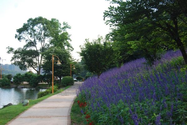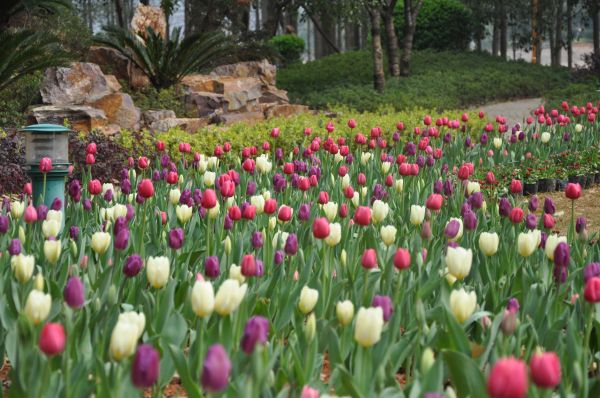 世界名花广场功能定位是世界名花观赏、特色花卉展示、森林康养体验、科研科普旅游。世界名花广场春季花展主要为郁金香、风信子、鸢尾、水仙、银莲花等一年生或多年生球宿根花卉;夏季花展主要为大丽花、格桑花、蓝花鼠尾草、紫色的柳叶马鞭草;秋冬季花展主要为观赏向日葵、粉黛乱子草、糖蜜草金红羽狼尾草等多种花卉。世界名花广场四季花草缤纷,此谢彼开,蝶飞鸟戏,游人如织,已成为湖南生态文明建设的一张靓丽名片。